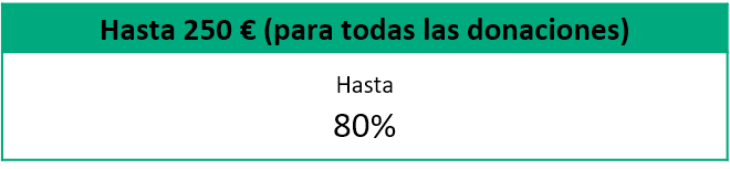 - En caso de donar 250€ la desgravación será del 80%, es decir, en la declaración de la renta del año que viene te devolverán 200€.